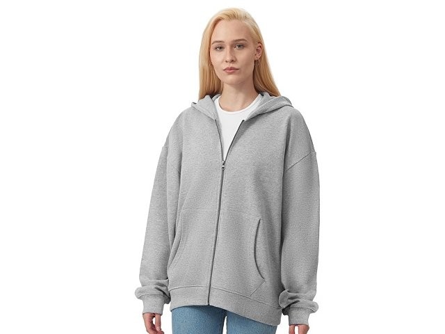 Толстовка на молнии с капюшоном. Риб 2х2 по манжетам и низу изделия. - удобный капюшон на подкладке из основного материала - посадка оверсайз - вместительный карман кенгуру - внутри на спинке кокетка - дополнительное место для нанесения лого клиента
