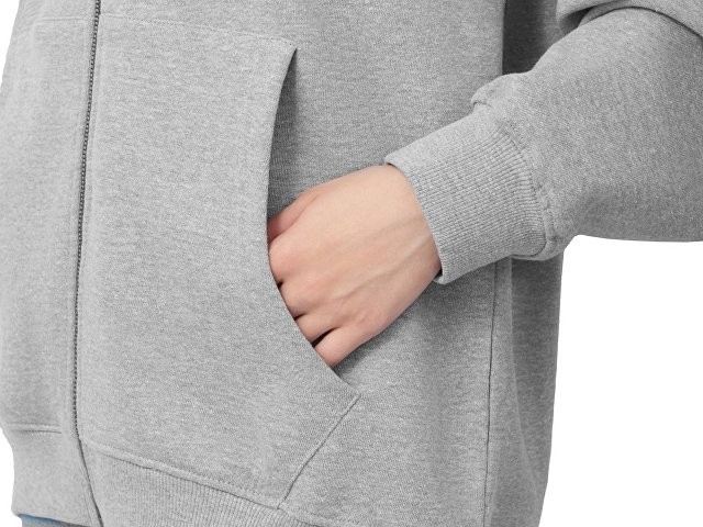 Расчет нанесенияТолстовка на молнии с капюшоном. Риб 2х2 по манжетам и низу изделия. - удобный капюшон на подкладке из основного материала - посадка оверсайз - вместительный карман кенгуру - внутри на спинке кокетка - дополнительное место для нанесения лого клиента