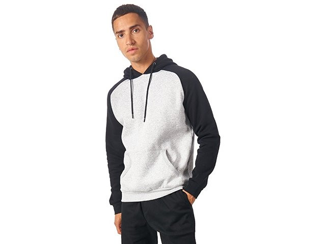 Толстовка с капюшоном (худи) из плотного футера с мягким начесом внутри. Модная и практичная модель, подходит для прогулок по городу, активного отдыха, путешествий и, конечно, промо мероприятий. - Прямой силуэт. - Контрастный рукав реглан и капюшон. - Капюшон с подкладкой из основного материала с металлическими люверсами, круглым шнуром с металлическими наконечниками. - Удобный карман-кенгуру, край отделан рибом 1х1. - Низ толстовки и манжеты рукавов обработаны рибом 1x1. - Полотно с небольшим содержанием полиэстера долго сохраняет форму и не мнется.