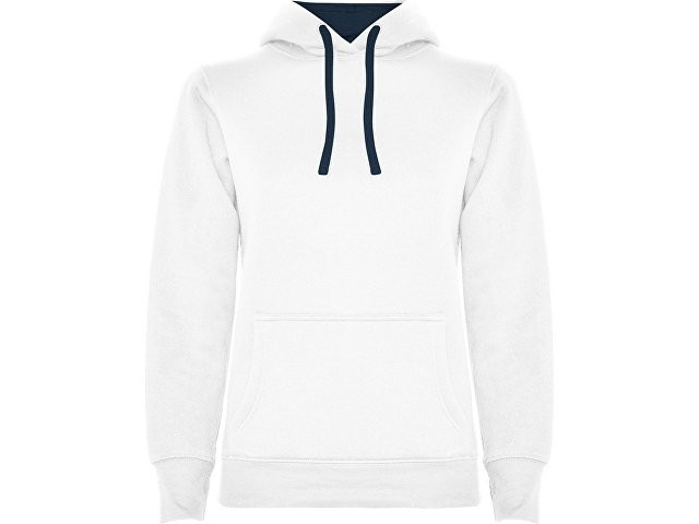Худи с капюшоном и шнурками. Отделка горловины спинки внутри тесьмой, Риб 1х1 по низу изделия и манжетам. Карман кенгуру. На манжетах вырез под большой палец На части цветомоделей подкладка капюшона и шнурки контрастного цвета.