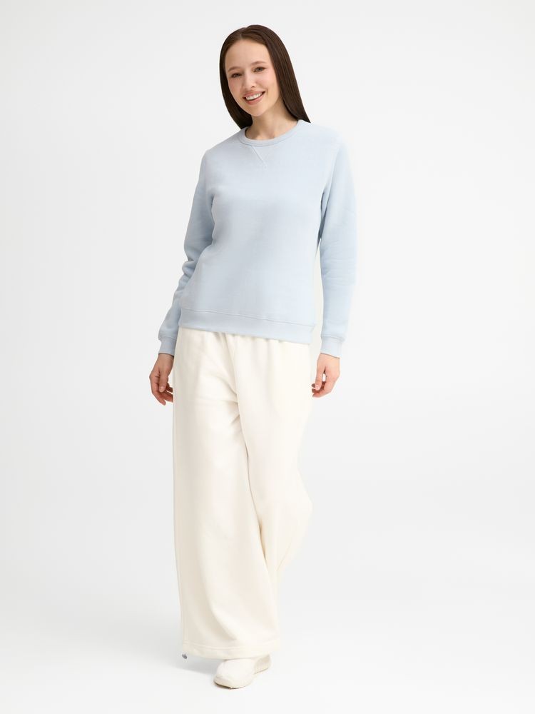 Женская утепленная толстовка с круглым вырезом и декоративной треугольной вставкой. Лейбл производителя в боковом шве изнутри, в шве горловины — только бирка с размером, что позволяет вам нанести свой логотип.