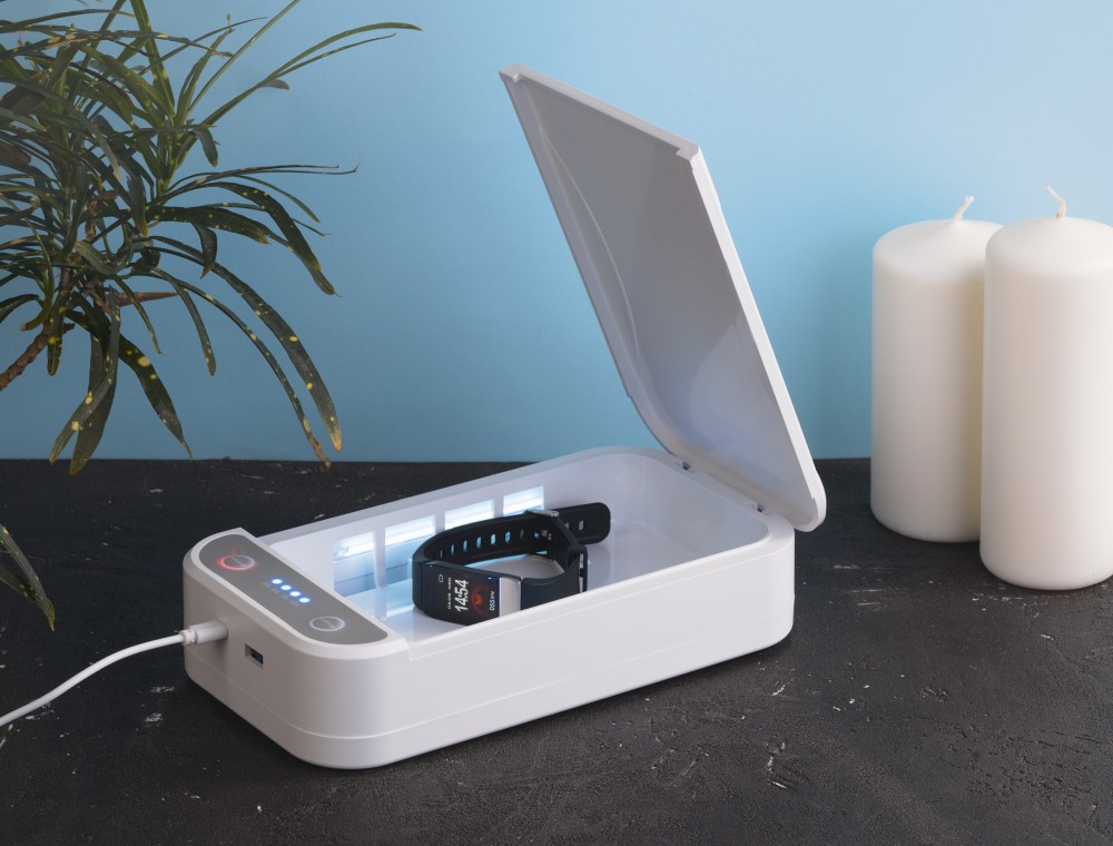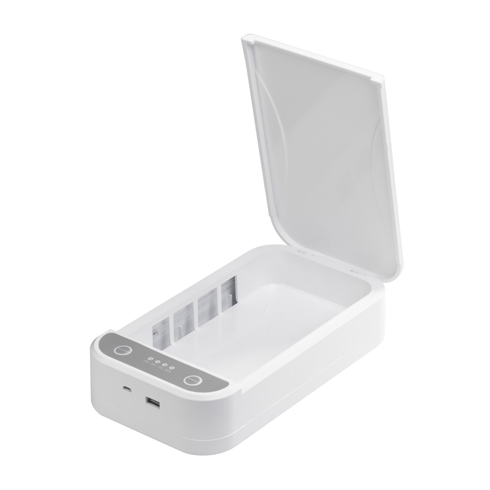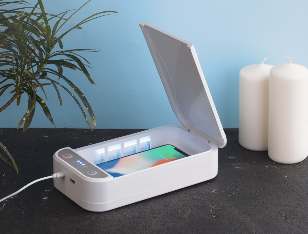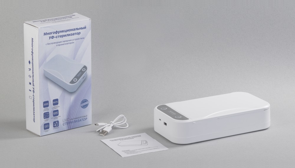 Внешний USB-выход позволяет заряжать различные гаджеты через кабель одновременно с процессом стерилизации и использованием функции беспроводной зарядки для лежащего внутри стерилизатора смартфона.