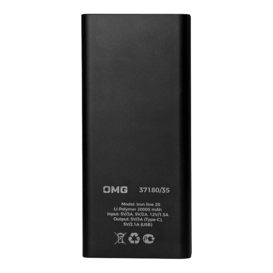 Универсальный аккумулятор Iron line 20 (20000 мАч), металл, серебристый, 14,7х6.6х2,7 см, Черный