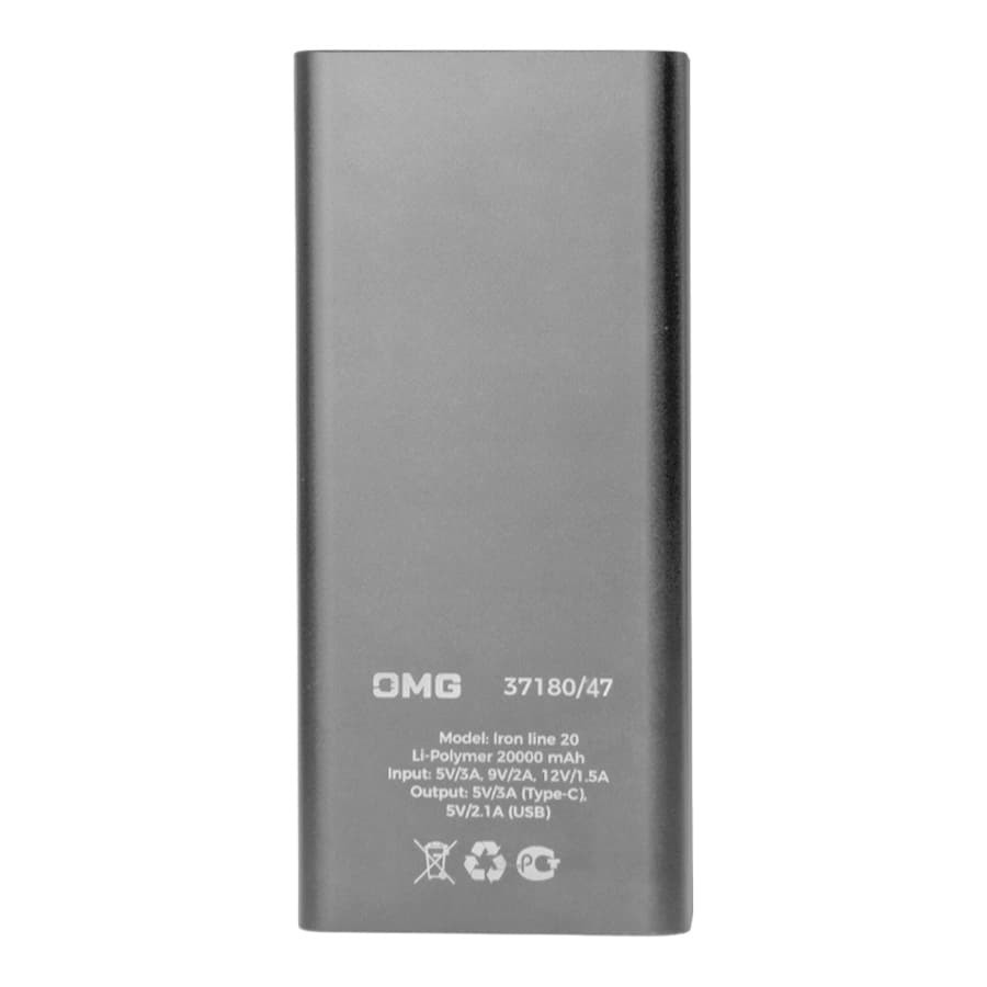 Универсальный аккумулятор Iron line 20 (20000 мАч), металл, серебристый, 14,7х6.6х2,7 см, Серебро