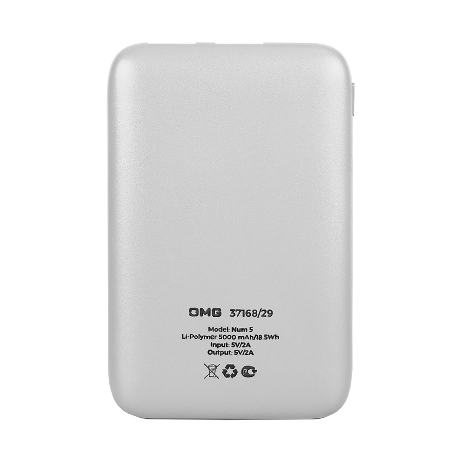Универсальный аккумулятор Num 5 (5000 мАч), белый, 10,2х6.3х1,2 см, Белый