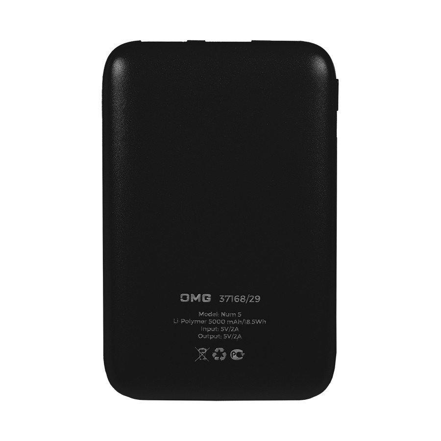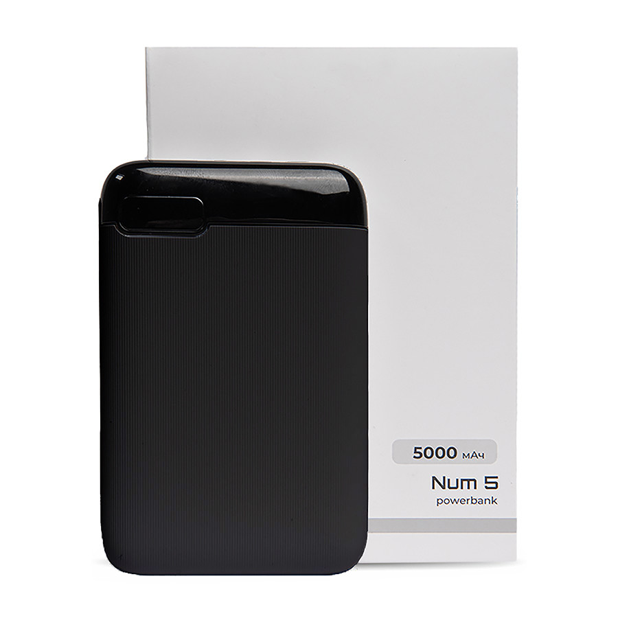 Универсальный аккумулятор Num 5 (5000 мАч), белый, 10,2х6.3х1,2 см, Черный
