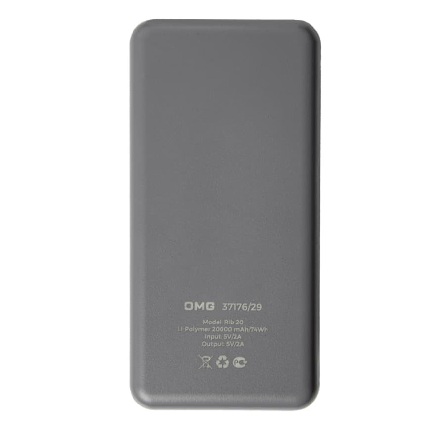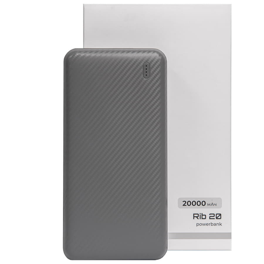 Универсальный аккумулятор Rib 20 (20000 мАч), серый, 14,1х6.9х2,8 см, Серый