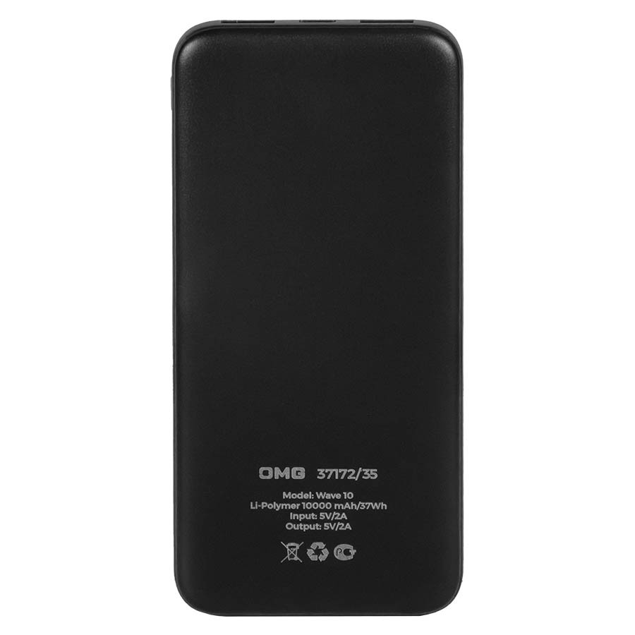 Универсальный аккумулятор Wave 10 (10000 мАч), белый, 14,9х6.7х1,6 см, Черный