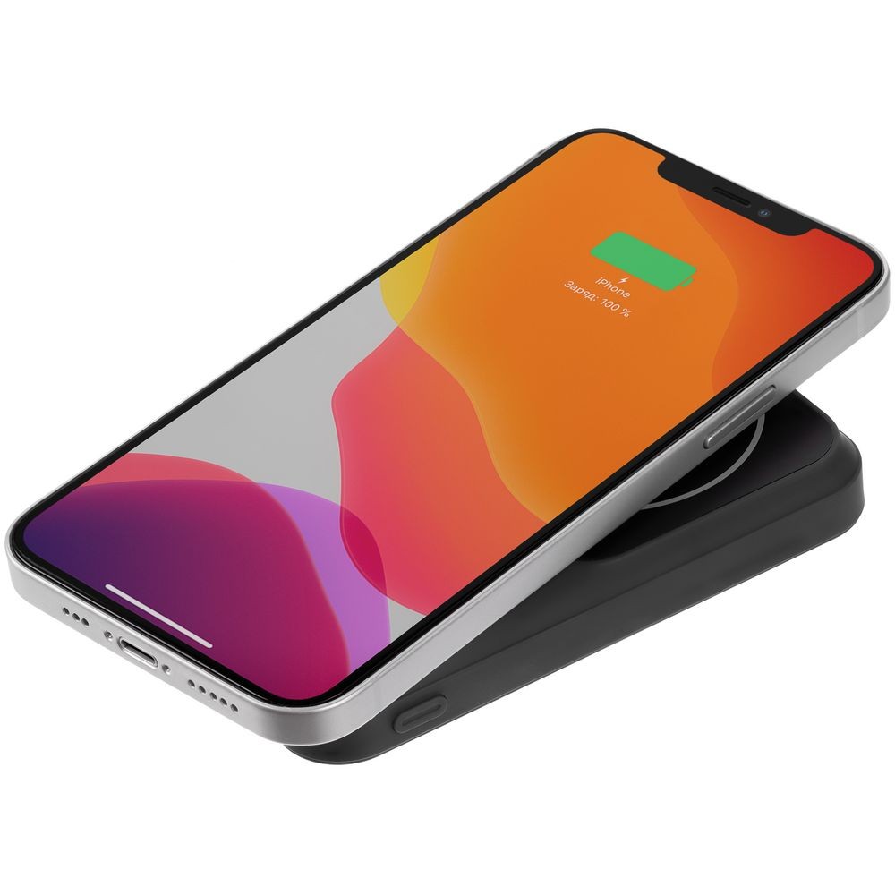 К задним крышкам iPhone 12-16 аккумулятор примагничивается без каких-либо дополнительных приспособлений, а для Android-устройств с беспроводной зарядкой и смартфонов iPhone 8-11 рекомендуем приобрести стикер-адаптер Magmate, чтобы максимально использовать это преимущество. Впрочем, противоскользящая накладка позволяет пользоваться беспроводной зарядкой и без адаптера.
