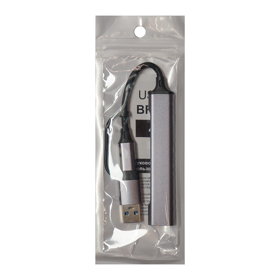 USB-хаб BRANCH 4 в 1, серый, алюминий, Серый