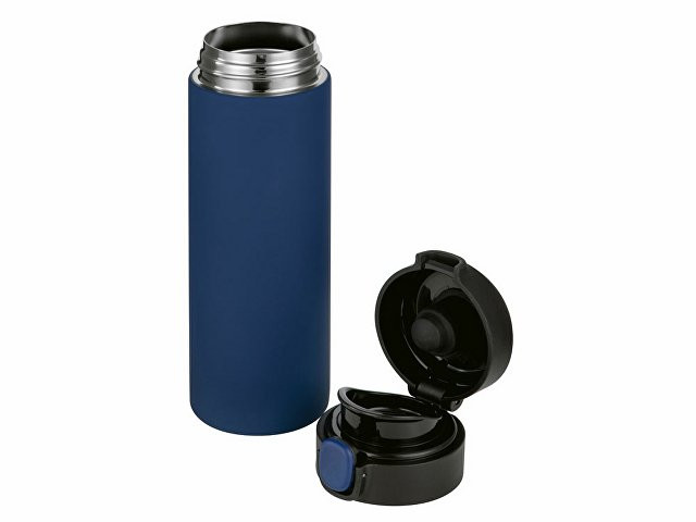Вакуумная термокружка Waterline c кнопкой «Guard», 400 мл, тубус, темно-синий