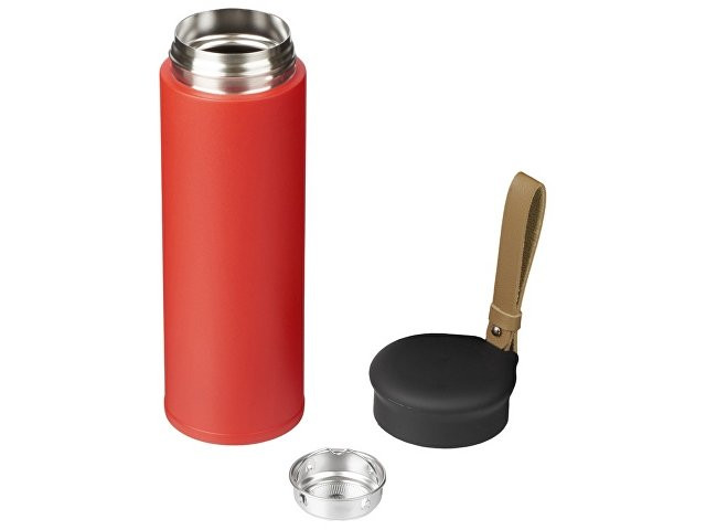 Engage — термос из долговечной нержавеющей стали с двойными стенками, вакуумная изоляция между которыми помогает сохранять температуру напитков в течение долгого времени. Термос идеально подходит для заваривания чая: специально для этого в комплекте идет металлическое ситечко с ручкой, которое не пропустит ни одной чаинки. Термос герметично завинчивается на крышку, оснащенную съемным ремешком из качественной ПУ кожи. Крышка имеет прорезиненное покрытие, что создает интересное сочетание текстур в рамках одной модели. Корпус имеет элегантную рельефную поверхность с антискользящим эффектом. - Удобный ремешок - Герметичная крышка soft-touch - Сохраняет тепло и холод до 18 часов - «Пищевая» долговечная сталь 304 марки - Оптимальный объем