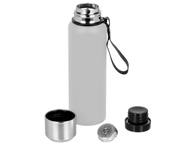 Вакуумный термос c двойными стенками из «пищевой» нержавеющей стали 304 марки для небольших путешествий и отдыха на природе. Надежно удерживает тепло и холод в течение 24 часов. Крышку можно использовать в качестве чашки. В комплекте имеется съемное ситечко из нержавеющей стали. Имеется прочный и удобный ремешок для переноски. Корпус покрыт специальной порошковой краской для надежного хвата и защиты от царапин. Объем 800 мл. - Удержание тепла и холода в течение 24 часов. - Удобный ремешок для переноски. - Матовое порошковое покрытие. - Двойные стенки из нержавеющей стали 304 (18/8). - Съемное ситечко. Номинальный объем термоса 800 мл, при использовании ситечка максимальный полезный объем составит 710 мл.