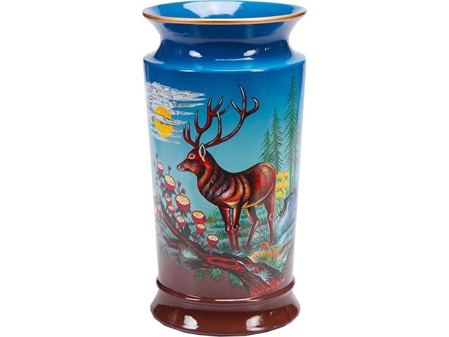 Расчет нанесенияНеобычная керамическая ваза с изображением оленя прекрасно подойдет в роли подарка не только женщинам, но и мужчинам, любящим охоту. Ваза покрыта яркими красками. В комплекте прилагается подарочный футляр.
