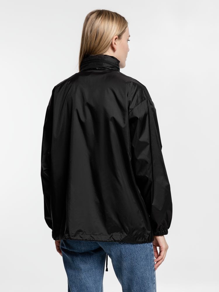 - Карман куртки служит сумочкой для нее: при необходимости ветровку можно компактно сложить, застегнуть карман на молнию и использовать пришитую эластичную тесьму, чтобы носить сложенную ветровку с собой на поясе