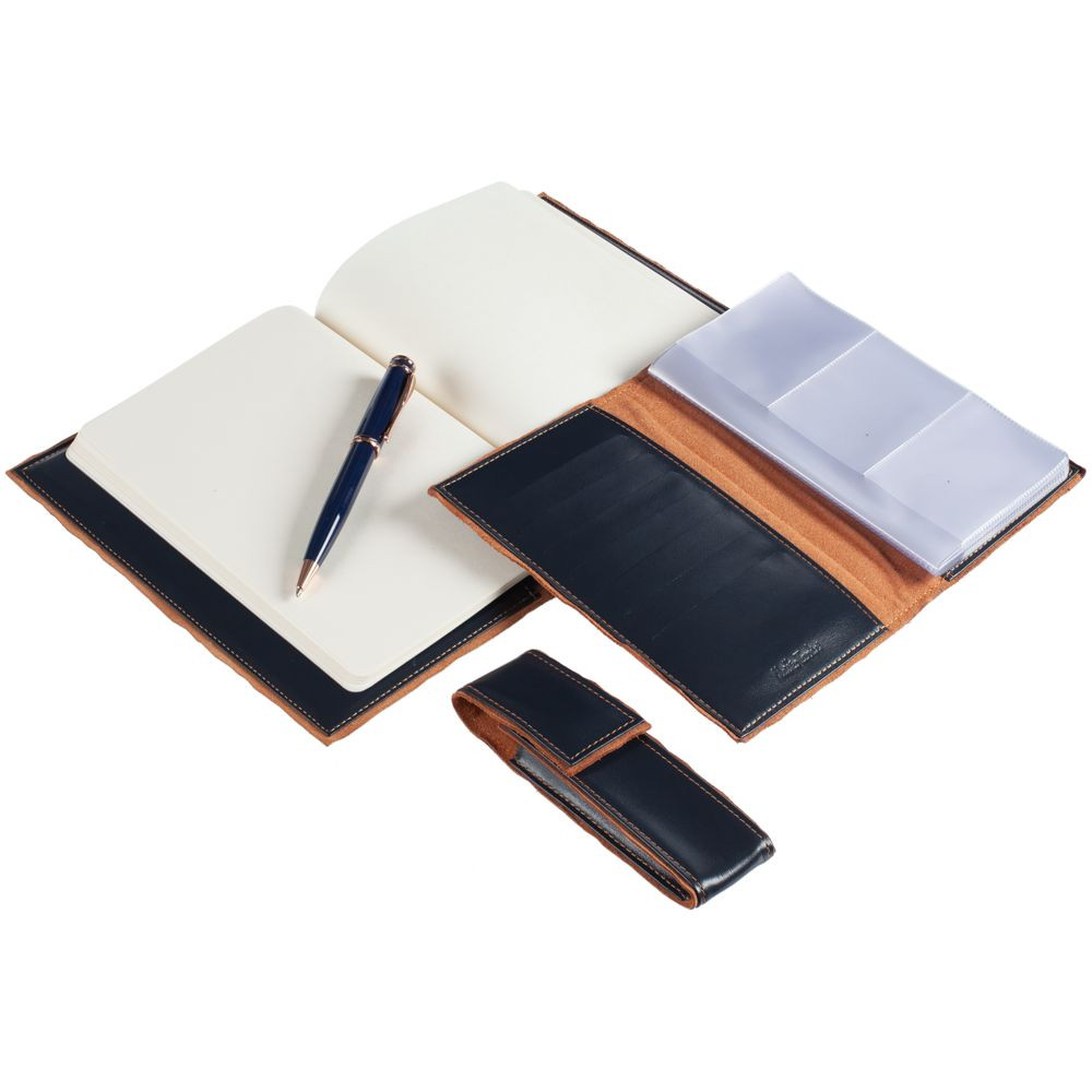 Изделия из линейки Palermo изготовлены из гладкой кожи глубокого синего цвета с контрастной отделкой из замши. Оформленные в едином стиле, они легко собираются в подарочные наборы.