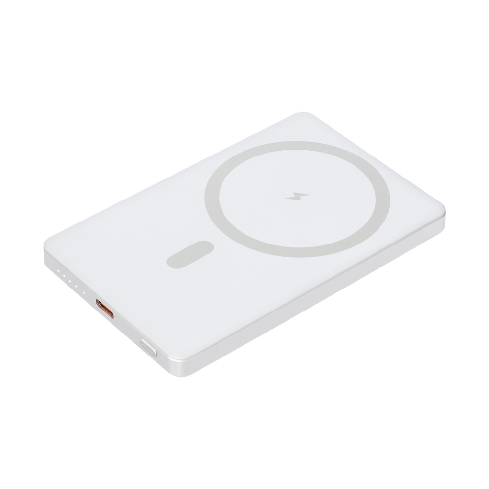 Благодаря усиленному магниту MagSafe, ваш iPhone будет надёжно закреплён на аккумуляторе, обеспечивая стабильное и эффективное пополнение энергии. Прочный алюминиевый корпус не только придает устройству премиальный вид, но и защищает его от повреждений. Техническая информация размещена на боковой грани.