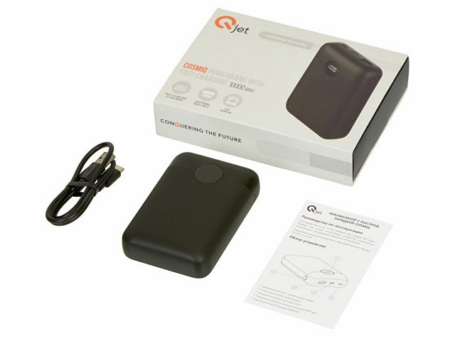 Мощный и компактный повербанк, размер которого чуть больше половины длины обычного смартфона. 2 выходных разъема (USB-A и USB-C) и 2 входных разъема (USB-C и Lightning). Все разъёмы поддерживают быструю зарядку, поэтому больше не нужно тратить время на поиск подходящего кабеля. У CosmIQ есть цифровой дисплей, отображающий уровень зарядка в процентах, а при активации быстрой зарядки на нём загорается значок зеленой молнии. Рельефный орнамент корпуса из микроскопических квадратов едва заметен, но при этом приятно чувствуется в руках. В комплекте кабель USB-C с поддержкой быстрой зарядки. - мощность 10000 мАч; - поддержка быстрой зарядки; - 4 разъёма: 2 выходных (USB-A и USB-C) и 2 входных (USB-C и Lightning); - индикатор заряда в процентах; - кабель в комплекте USB-C; - компактный; - уникальная текстура корпуса.