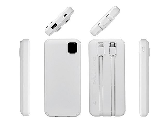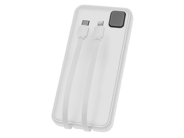 Внешний аккумулятор со встроенными кабелями «Фрэйм», 10000мач, белый