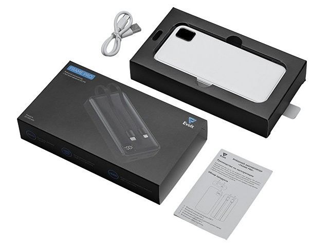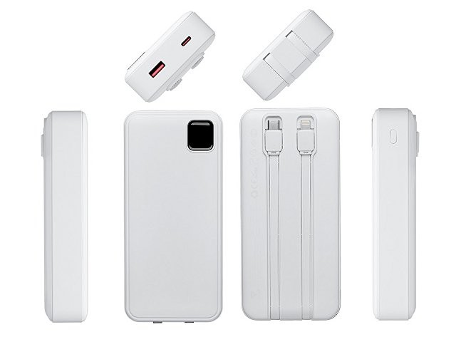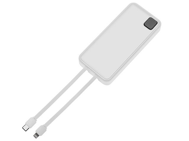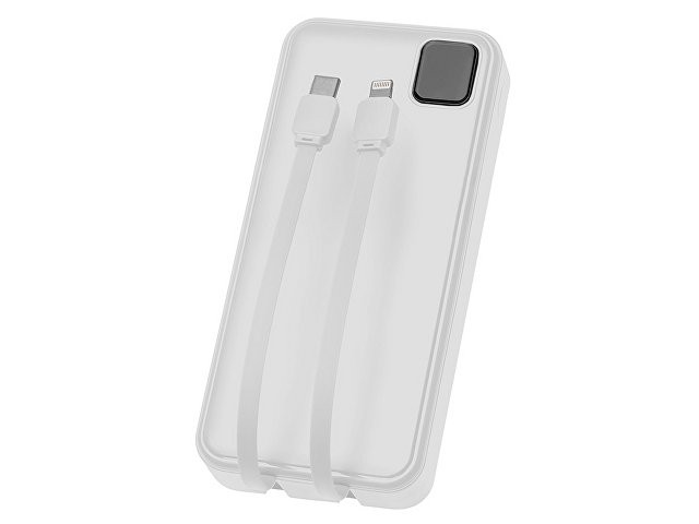 Внешний аккумулятор со встроенными кабелями «Фрэйм Про», быстрая зарядка, 20000мач, белый