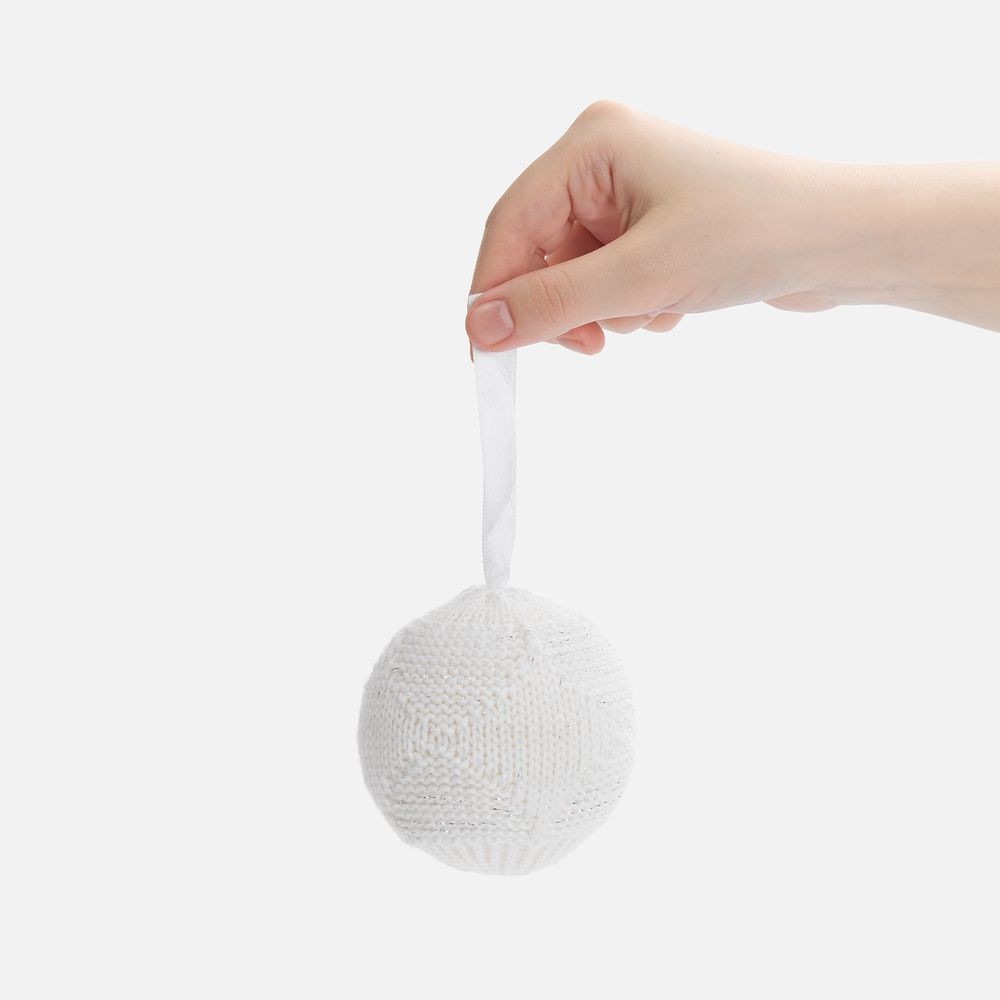 Настоящее воплощение зимнего шарма в вязаной миниатюре. Геометрический узор придает шарику современный вид, а вкрапления серебристого люрекса создают эффект праздничного сияния. Это украшение добавит изысканности елке и всему интерьеру, подчеркивая чарующую атмосферу зимнего праздника.Поставляется в пакете с липким краем.
