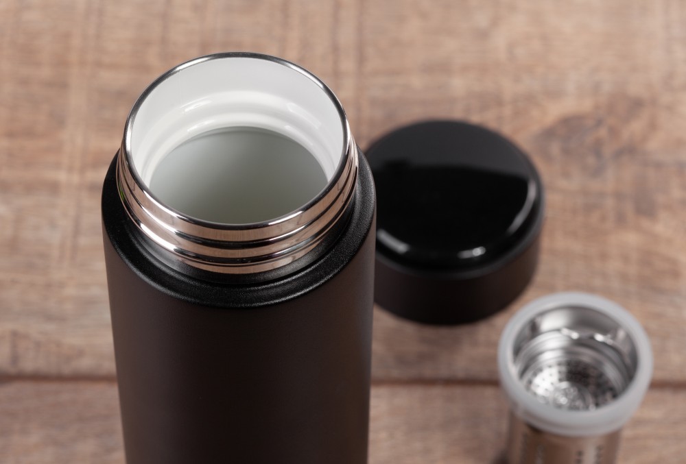 Финикс - новый эталон практичности. Новинка получила керамическое покрытие колбы. Белая керамика защищает напиток от контакта с металлом, благодаря этому он дольше сохраняет свежесть и полезные свойства. В комплекте инфузер для заваривания чая или кофе. Крышка с индикацией разборная, батарейку (тип CR2032) можно легко заменить.