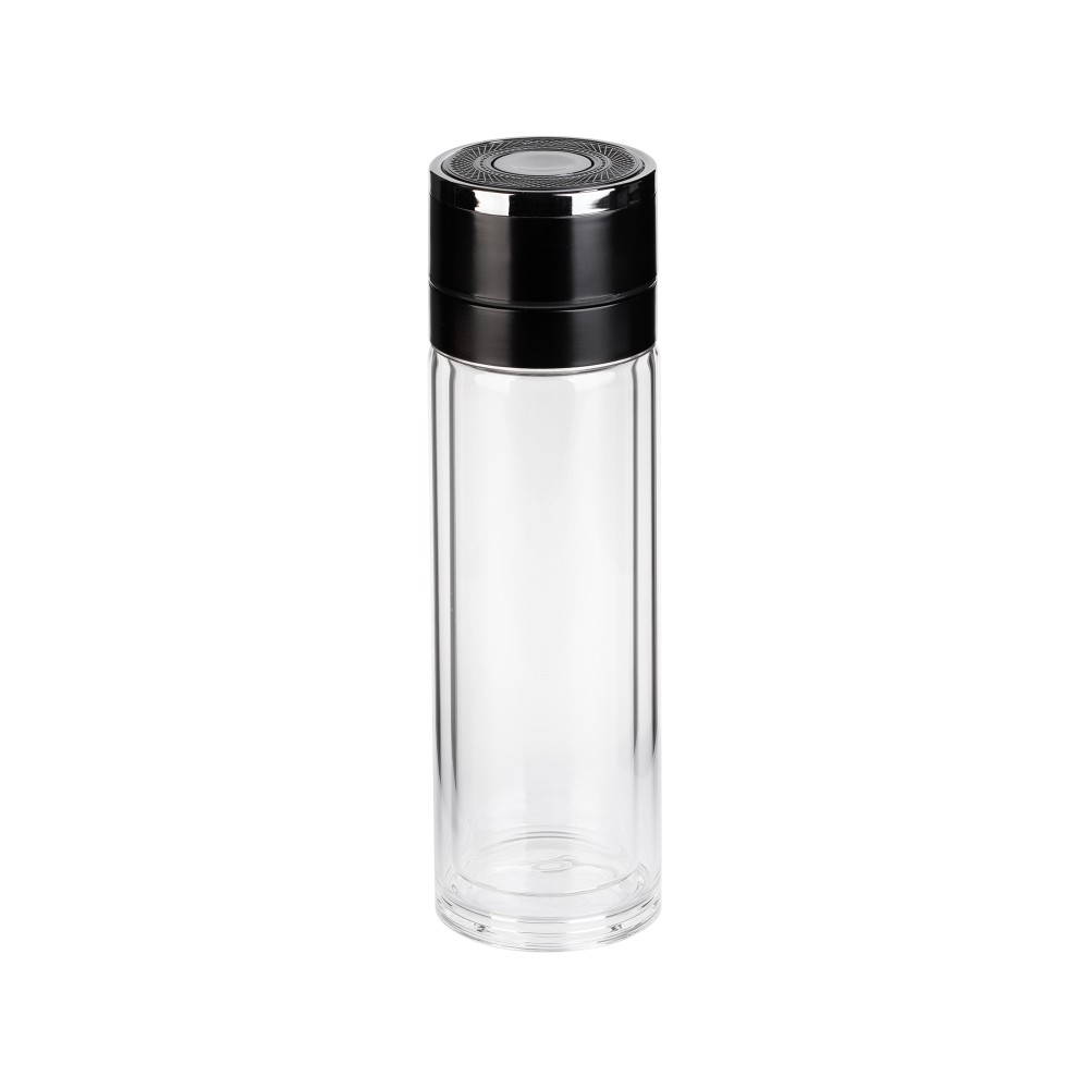 Заварочный термос "Press" 400 мл с удобной крышкой, которая открывается нажатием кнопки, для закрытия достаточно слегка надавить на нее до щелчка. Сито из 304 стали для фильтрации содержимого. Двустенная колба из боросиликатного стекла идеально подходит для горячих напитков, внешняя стенка не нагревается, комфортно держать в руках. Стекло не имеет посторонних запахов, напитки сохраняют вкус.