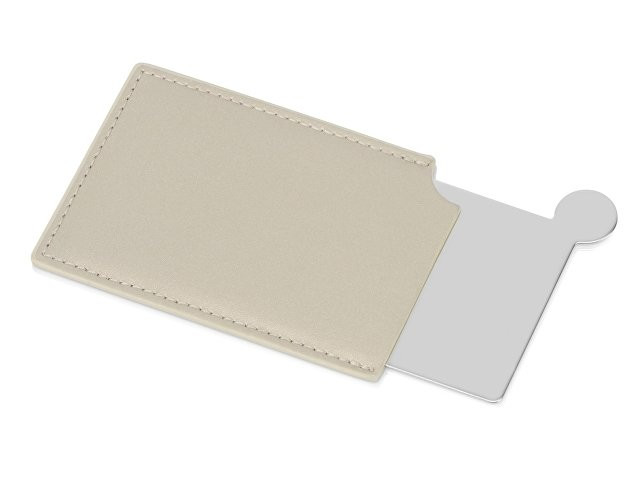 Оригинальное зеркало в чехле из искусственной кожи толщиной всего 3 мм легко поместится не только в сумке, но и в кармане или небольшом органайзере. Выполнено из металлического сплава и отполировано. Такое зеркало никогда не разобьётся. Надпись или логотип можно нанести как на чехле, так и на самом зеркале.