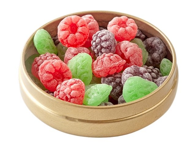 Натуральная и необычная карамель со вкусом малины, смородины, яблока и апельсина в одной баночке. Данные леденцы имеют превосходное качество и каждый раз напоминают прекрасный вкус лета. Баночка весьма компактна, что позволяет поместить её в любой карман. Разработана по немецкой технологии. Состав: патока, вода, регуляторы кислотности (лимонная кислота, молочная кислота), ароматизаторы, идентичные натуральным, краситель: аннато, сахар.