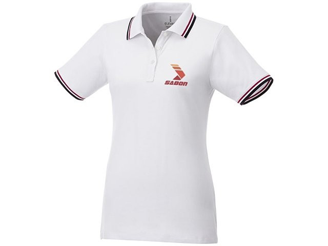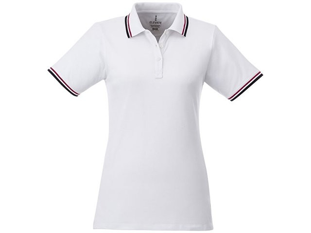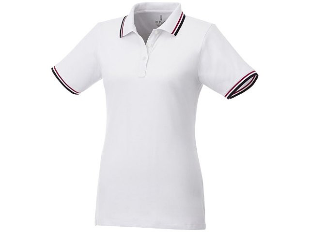 Женская футболка поло Fairfield с коротким рукавом с проклейкой. Воротник гладкой вязкой в рубчик. Манжеты гладкой вязкой в рубчик. Контрастные окантовки. Планка с тремя пуговицами (мужская модель).Гравированные пуговицы в цвет изделия. Комфортный ярлык-трансфер на изделии. Трикотажное пике, 100% хлопок. 180 г/м².