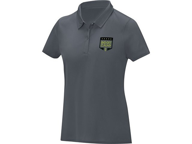 Женская стильная футболка поло с короткими рукавами Deimos. Возможность нанесения на внутреннюю часть фирменной символики. Планка с двумя пуговицами. Для большего комфорта основной ярлык можно оторвать или отрезать. Обработка воротника обтачкой из основной ткани. Передний боковой шов со строчкой «флатлок». Сетчатая ткань с покрытием cool fit 100% Полиэстер, 105 g/m2.