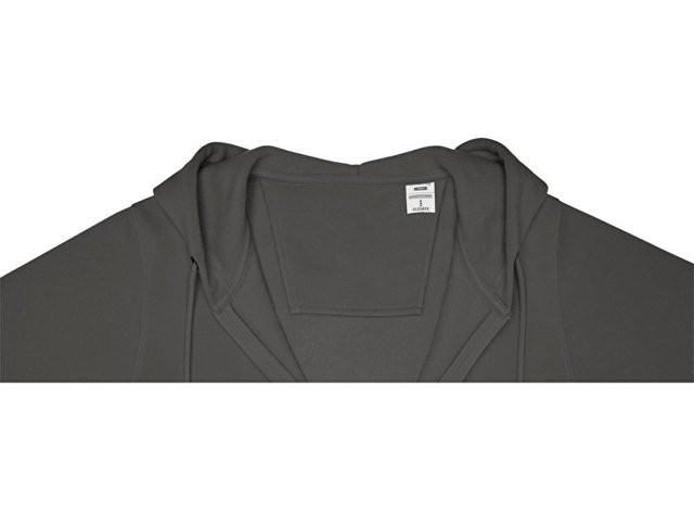 Женская толстовка на молнии Theron. Основная этикетка, которую можно оторвать или отрезать, без неудобных пришитых ярлыков. Завязки на капюшоне. Расположенная по центру молния. Карман «кенгуру». С подшивкой из гладкого трикотажа в рубчик. С манжетами из гладкого трикотажа в рубчик. Внутренняя сторона покрыта ворсом. Тесьма из основного материала по внутренней стороне горловины. Придающие форму швы и зауженная талия для ровного прилегания. Трикотаж 50% Хлопок, 50% Полиэстер, 240 g/m2.