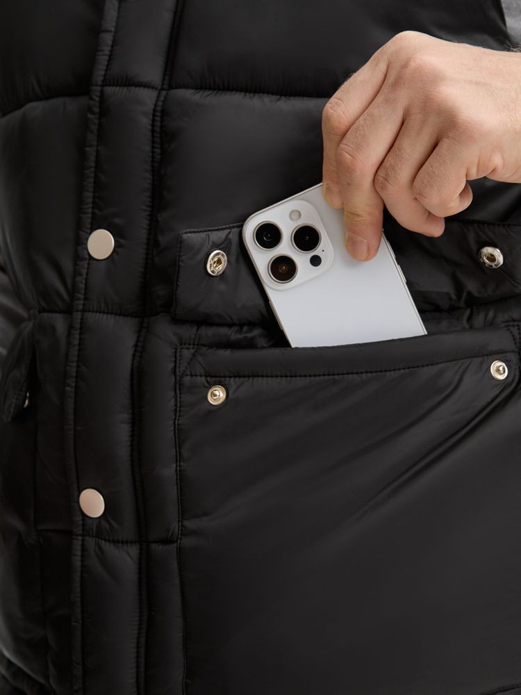 - Центральная застежка-молния с ветрозащитной планкой с металлическими кнопками