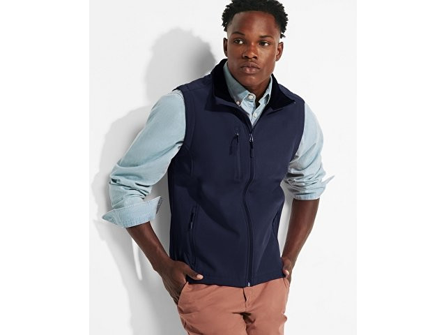 Двухслойный жилет софтшелл. - Центральная молния в тон с защитой для подбородка. - Нагрудный карман с правой стороны с молнией в тон. - Два внешних кармана на молнии в тон. - Низ с эластичным шнуром и фиксаторами.