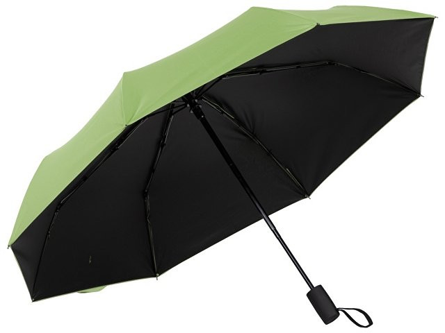 Особенностью этого зонта-автомата является двухцветный купол повышенной плотности и прочности. Под таким зонтом не страшен никакой дождь, даже с порывами ветра. На ремешок-застежку на липучке шириной 3 см можно нанести логотип. Эластичный шнурок на ручке служит для дополнительного удобства при хранении.