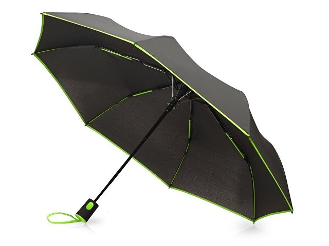 Зонт-полуавтомат складной Motley с цветными спицами, черный/зеленое яблоко