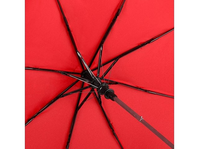 Полуавтоматический складной зонт открывается нажатием кнопки на ручке. Для большего удобства на ручку нанесено покрытие soft touch и добавлен эластичный шнурок.