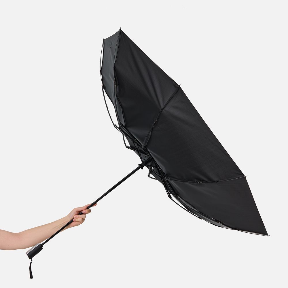 Зонт оснащен механизмом с пружиной и спицами из стекловолокна. Благодаря этому когда при экстремальных порывах ветра купол выгибается, механизм пружинит, не давая спицам погнуться или сломаться.