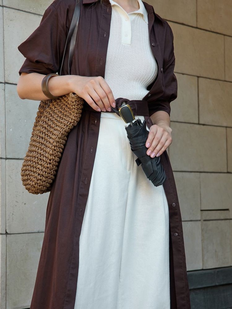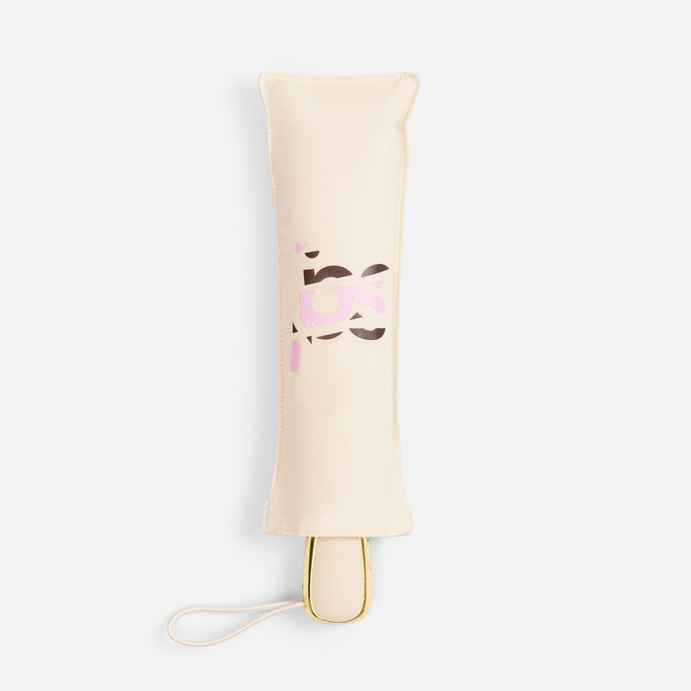 - Пластиковая ручка с золотистой вставкой и кнопкой для автоматического открывания зонта