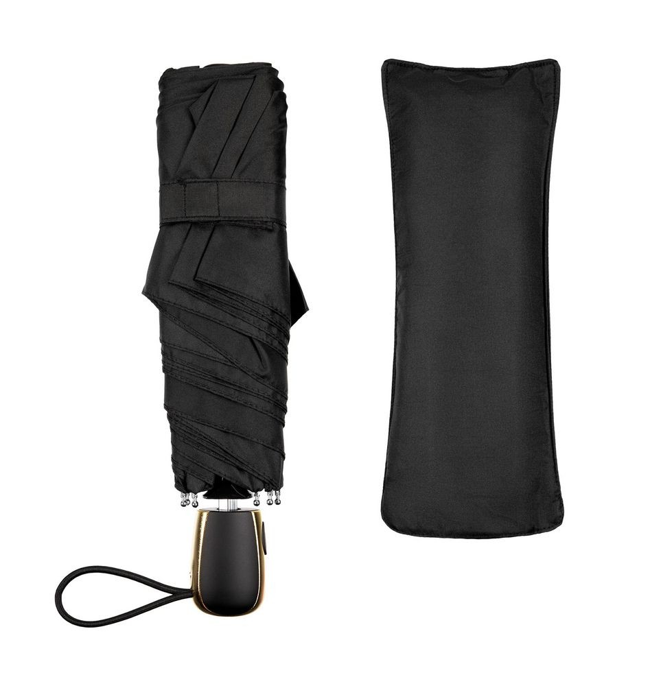 - Пластиковая ручка с золотистой вставкой и кнопкой для автоматического открывания зонта