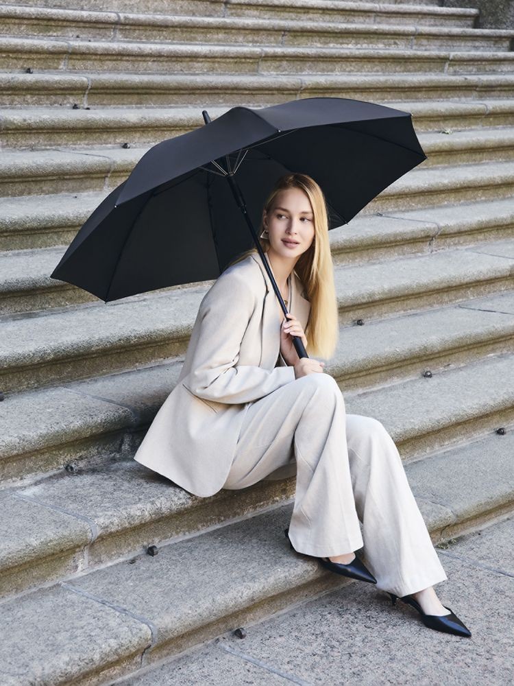 - Пластиковая ручка оригинальной формы с кнопкой открывания зонта