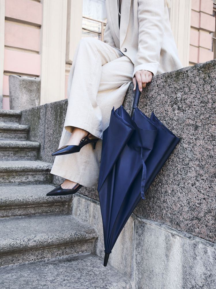 - Пластиковая ручка оригинальной формы с кнопкой открывания зонта