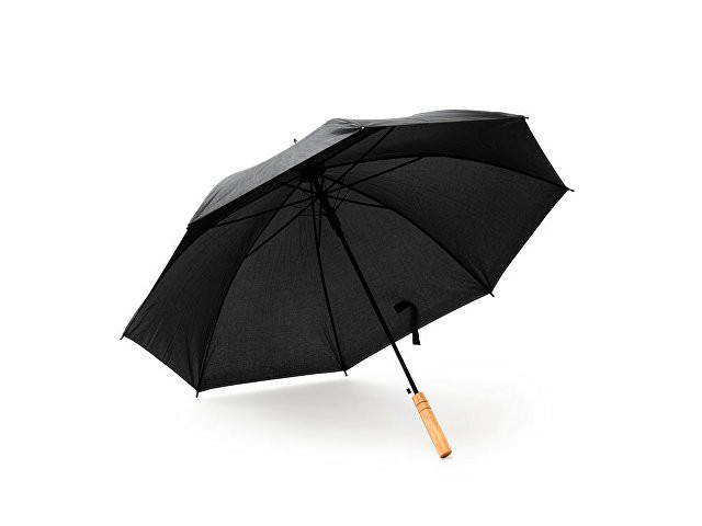 Расчет нанесенияЗонт с деревянной ручкой и автоматическим открытием. Спицы и отделка черного цвета. Застежка на липучке.