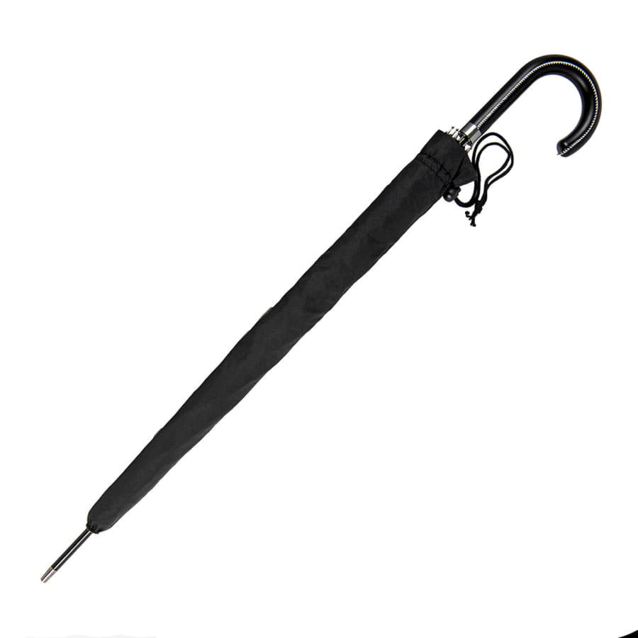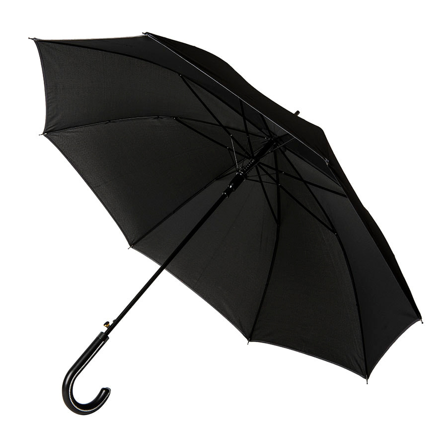 Зонт-трость OXFORD с ручкой из искусственной кожи ,чёрный, полуавтомат, 100% полиэстер, Черный