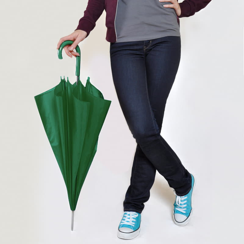 Зонт-трость с пластиковой ручкой, механический; белый; D=103 см; 100% полиэстер 190T, Зеленый